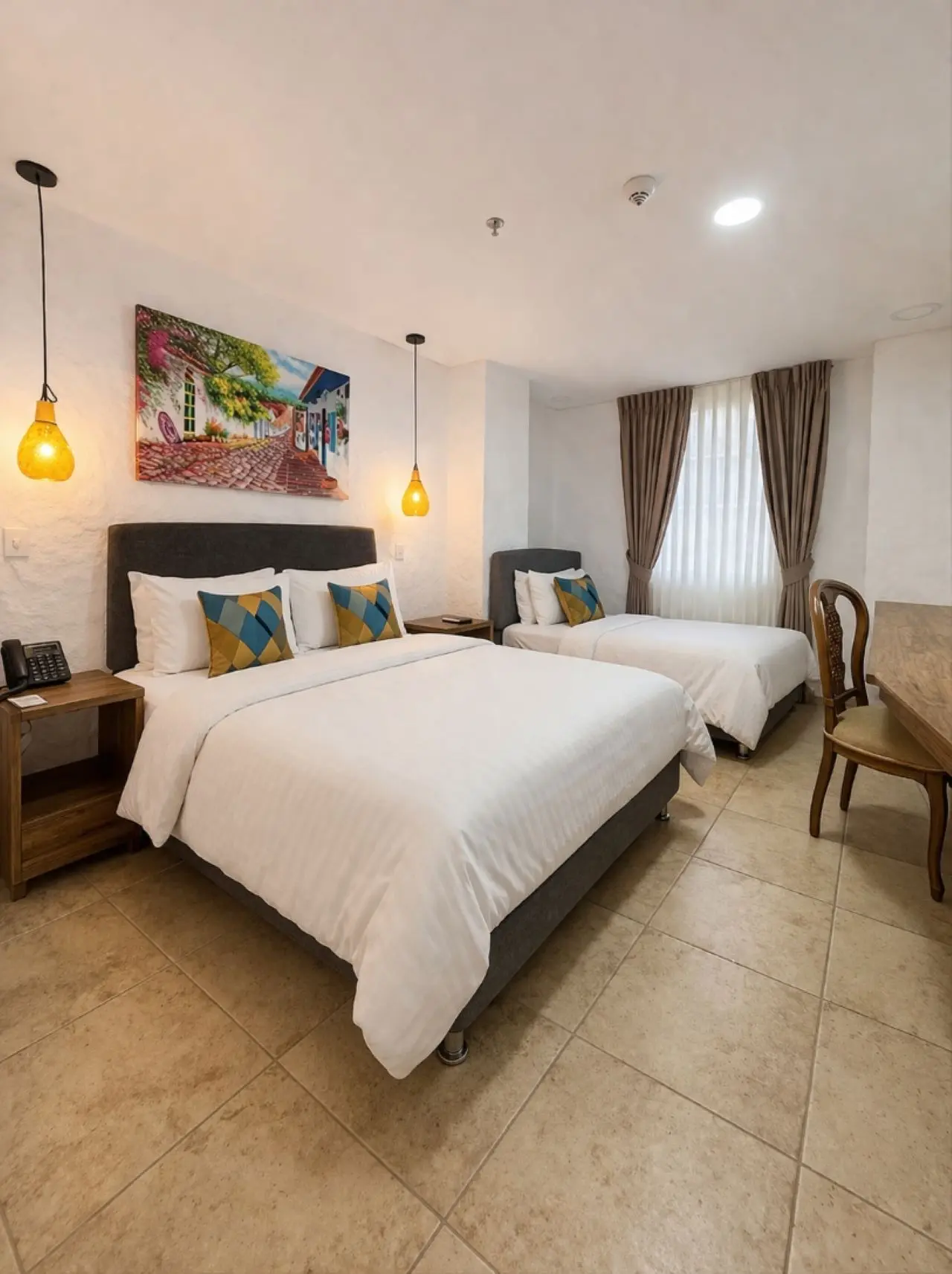 Hotel boutique en el Oeste de Cali, donde el encanto colonial se une con el confort, la tranquilidad y una ubicación privilegiada cerca del Bulevar del Río, el Gato de Tejada, Cristo Rey y otros atractivos de interés turístico, cultural y comercial.